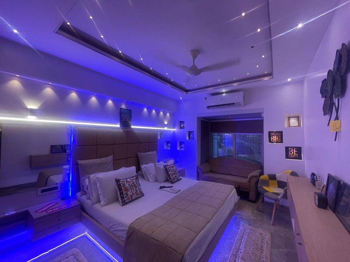 🌊 Wake up to calming beach views at this spacious 2BHK villa in Madh Island. Perfect for families or groups, the villa offers 2 bedrooms, each with an attached living area with sofas that convert into extra sleeping space — comfortably hosting up to 8 guests max. 🏊 Enjoy your private pool, large terrace and🌿lush lawn, or simply unwind while soaking in the sea breeze 🌬️. With 🍽️ complimentary breakfast and modern amenities, it’s an ideal blend of comfort, nature, and relaxation.