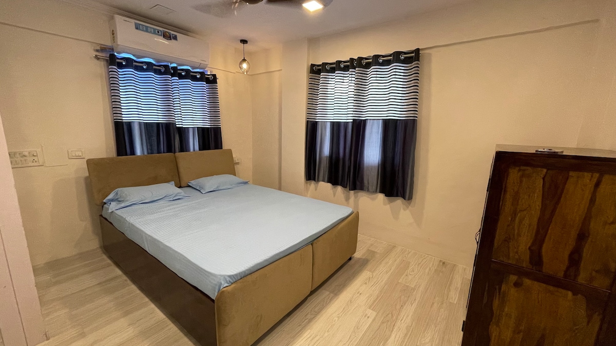 This stylish, fully furnished apartment offers 1.5 cozy bedrooms, 2 bathrooms, a bright living room, and a well-equipped kitchen. Enjoy high-speed Wi-Fi, AC, washing machine, and 24/7 security. Located on main 10th Road in Juhu, this is ideal for families, professionals, or couples seeking comfort and convenience in a prime Mumbai neighborhood. ►Highlights → 4-min drive to Juhu Beach → Close to ISKCON Temple, Prithvi Theatre, and popular cafés → Easy access to the airport