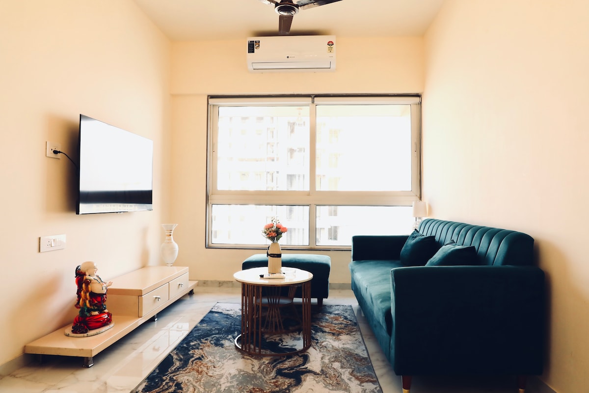 Welcome to Your Modern Day-Chic 1-Bedroom Apartment Retreat near BKC! With its minimalist design, ample workspace, entertainment options, and essential amenities, it caters to the needs of both business and leisure travelers! Features: ★ Large Work-Desk ★ Free High-Speed WiFi ★ Smart TV ★ Tata Sky with all HD Channels ★ Sound Bar ★ Microwave/Fridge ★ Air Fryer ★ Air Purifier ★ Water Purifier Book now and experience the perfect blend of modernity and comfort!