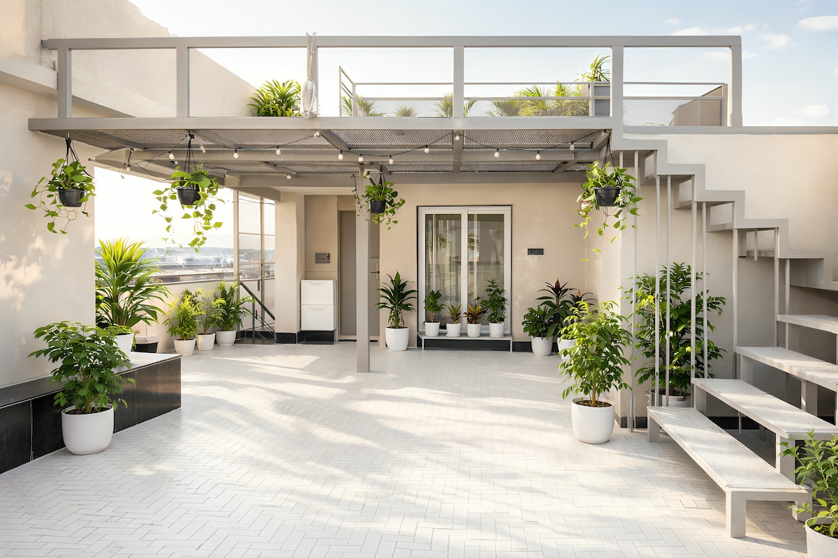 The Beige Cloud – A Luxurious 1BHK Penthouse Experience Above the City. (Couple freindly) Where luxury meets calm - rise above the noise and float in comfort. A meticulously designed penthouse where warm minimalism meets high-end comfort. The Beige Cloud is a private, couple-friendly escape featuring serene interiors, a soothing beige palette, immersive entertainment with a 75-inch TV - perfect for slow living, intimate moments, and a peaceful stay for couples, or business travelers.