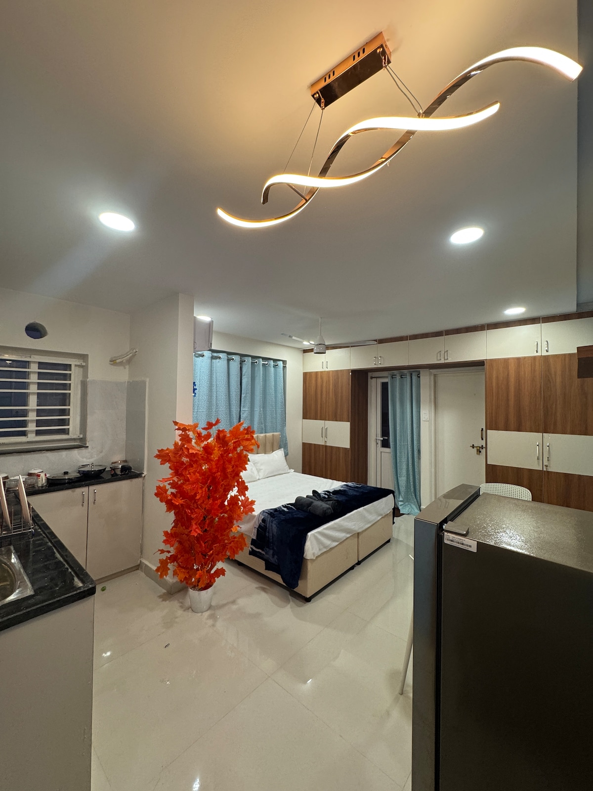 ✨ Modern Fully Furnished Studio 1RK just steps from 100 Ft Road, Indiranagar. Discover comfort and style at Ega Solace! This standalone, fully stacked studio offers a modern kitchen, elegant bathroom, and private bedroom. Smart TV for entertainment, dedicated hi-speed wi-fi, power backup, lift, laundry, and parking. With secure access, CCTV, and close proximity to top restaurants, cafes, breweries, & shops, it’s the perfect blend of safety, luxury, & convenience. 📅 Book your stay today!