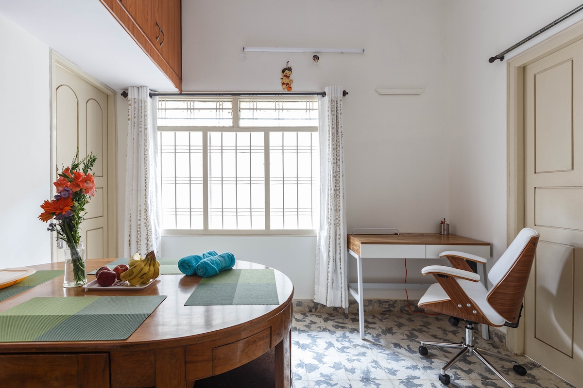 Our terrace home is quietly nestled in a thriving warm fishermen community in Uthandi with no bustle of traffic, and the sound of the waves from the ocean. This private terrace comes with a sweeping expanse of seaview and a myriad of green potted plants amidst some cosy bamboo furniture, the sea breeze brushes your hair while you sip on some chai. And wait, an unlimited view of the sky to star gaze. Book lovers can browse through our collections or catch up on some creative writing too.