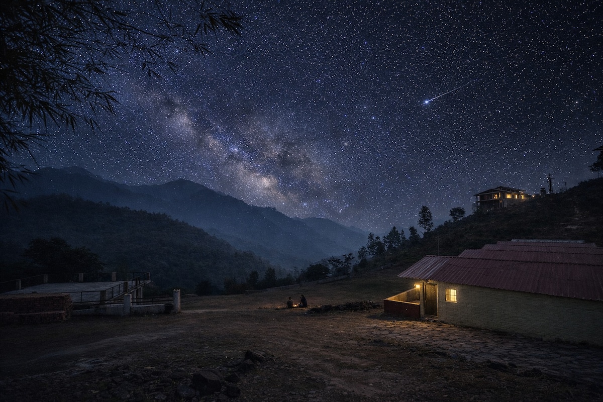 Escape to Nihita, a tranquil retreat surrounded by luscious vegetation. Perfect for people looking to unwind, recharge, and experience nature. Take a stroll among the neighbouring hills while admiring the breathtaking views. Nihita is an ideal destination for a vacation or retreat, offering the perfect balance of excitement and relaxation. Enjoy Your Stay with us! There's plenty of space for trekking and strolling. Happy Vacations!!