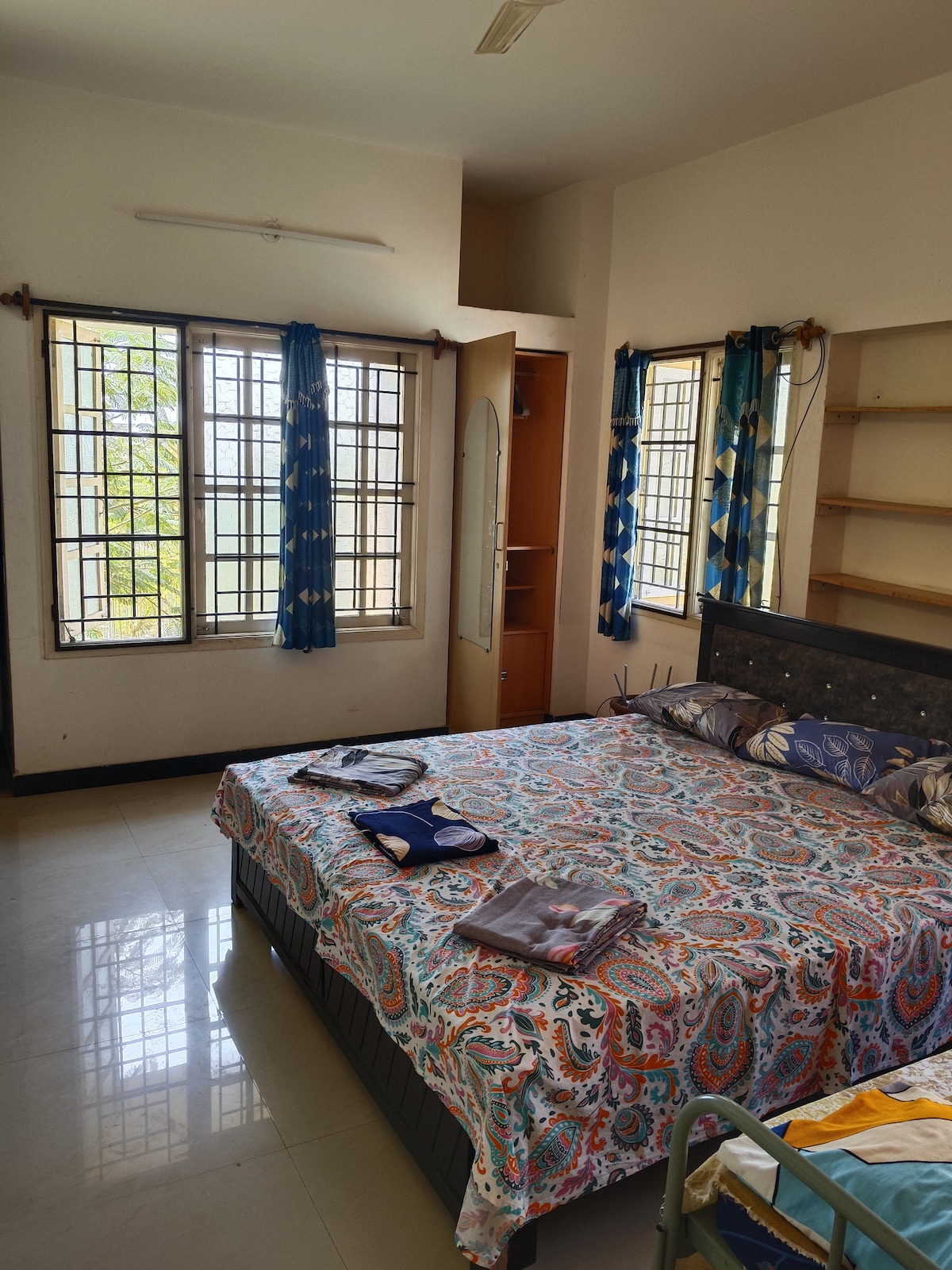 A great space for two or three travellers in the middle of the city, AC in bedroom, with a beautiful garden terrace overlooking the army cantonment. Close to all IT and manufacturing hubs in Bengaluru, and even closer to the top party destinations of the city. Well lit and decorated ambience welcomes you as you check in. All conveniences available nearby, including hospitals, malls, restaurants and departmental stores. Accommodating host presents this space on the third floor. NO LIFT HERE