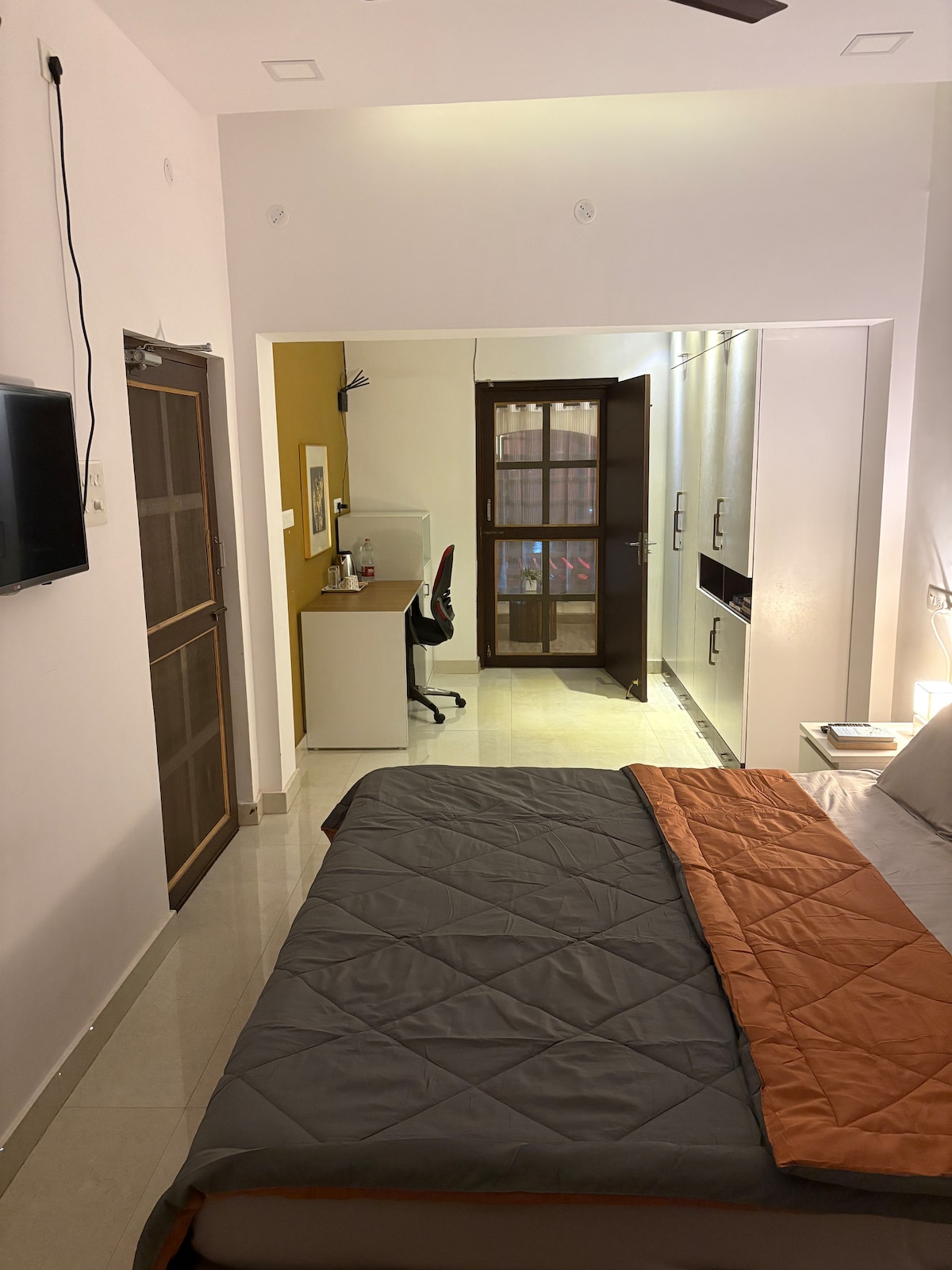 This centrally located haven grants effortless access to all amenities for your entire group. Step into a realm of clean, elegant ,stunning and LUXURIOUS SUITE,featuring an expansive attached bathroom. Stay productive and comfortable with a separate spacious work desk. Beyond lies a tranquil oasis: a 600 sqft open GARDEN PENTHOUSE, offering serene relaxation amidst calm and verdant surroundings. Kindly uphold the esteemed ambiance of the premises and foster an eco-friendly atmosphere.