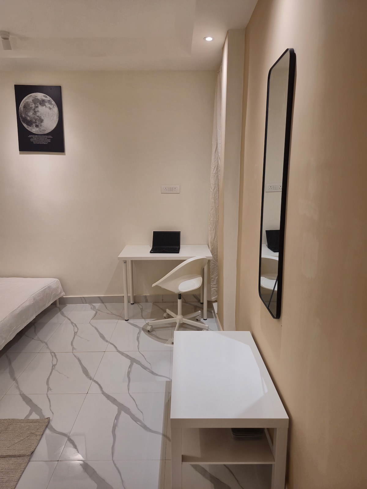Our cozy private studio property offers everything you need for a comfortable stay. The studio has a single bed, and its NonAC. A highlight of this studio is the fully equipped private kitchen. Additionally, a spacious working desk is available with dedicated wifi. There's a private washing machine and washroom. The location is a major plus – just 3 km from IIM Bangalore and a mere 1 km from Meenakshi Mall, Bannerghatta Road. You'll have easy access to shopping, dining, and local attractions.