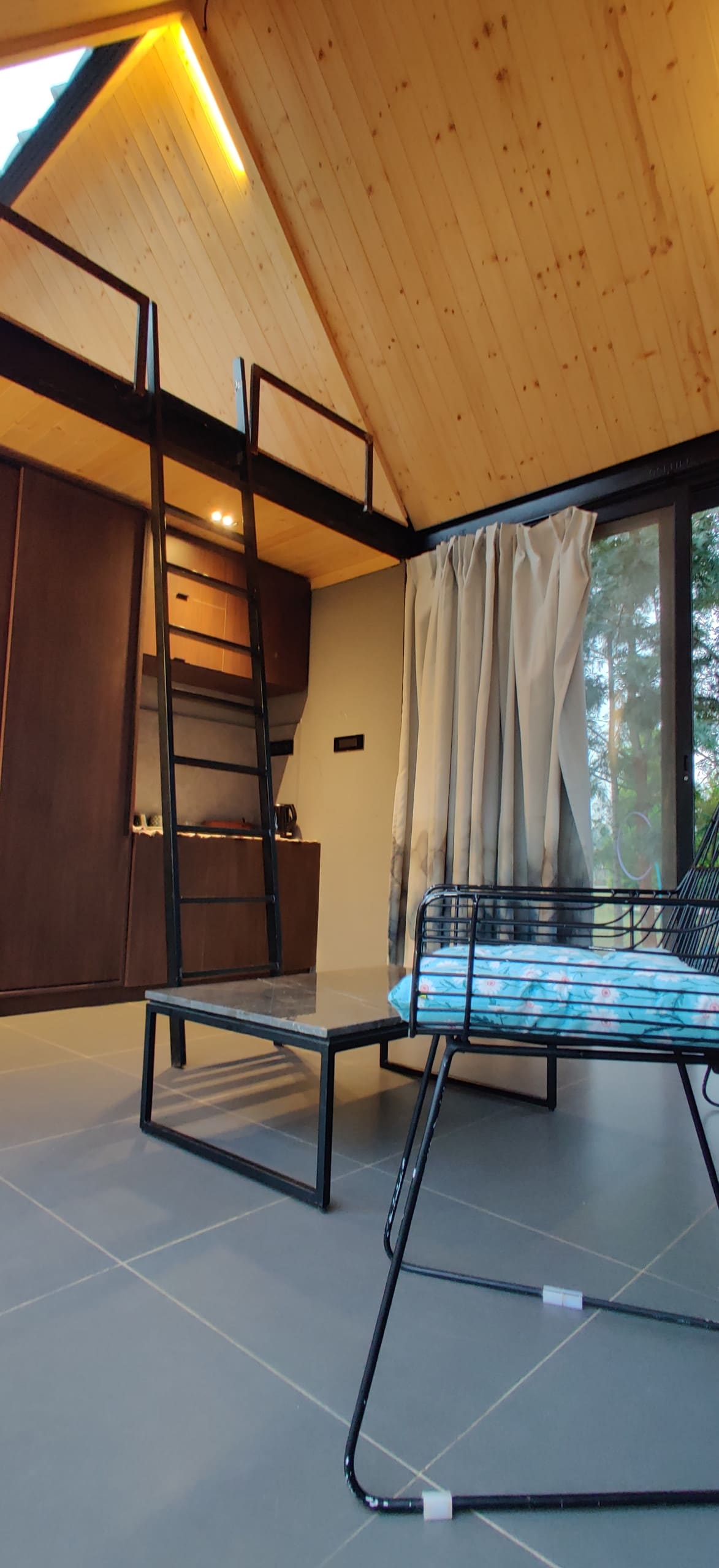 Step Into Stillness with our Designer Cabin LOFT. Discover a sleek, minimalist cabin with floor-to-ceiling glass with greenery. Perfect for couples or solo travelers, enjoy serene surroundings, outdoor seating, and total privacy. Unwind, stargaze, or explore nearby attractions. Nestled in a one acre fenced property amidst Vineyards with ample car parking, farm fresh food at our cafe and ample private outdoor space with a private bonfire option. Keys, ignition, shift gears to hiteskape.
