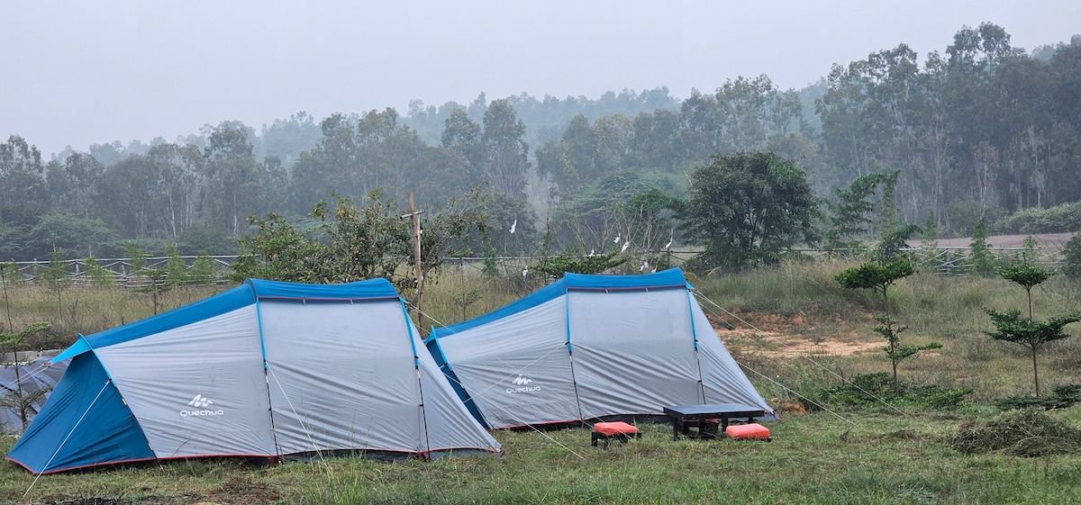 Glamping an hour away from Bangalore!Set in the middle of nowhere, indulge in the lap of luxury while camping in the wild!Enjoy time in nature with our private pool, outdoor bar.Relish our scrumptious menu made by your private chef, with ingredients grown fresh in our farms to bring to you the farm-to-table experience