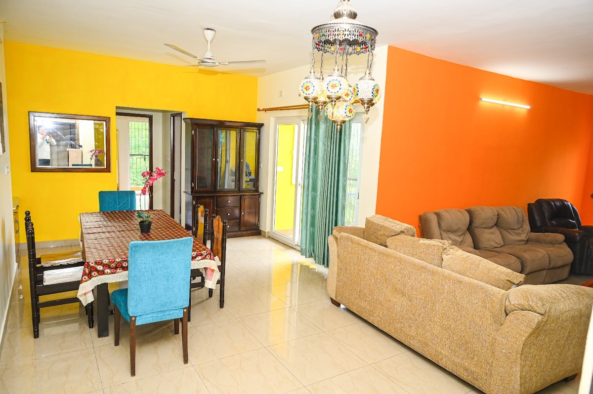 This super comfortable [Air Conditioned]😎 3 bhk A home with fully furnished kitchen and balcony is located in the heart of the city. Walkable distance from the world famous ISKON Temple. Rajajinagar metro station is located just 400 metres away. Orion mall and the World Trade Centre is located within 1km. Wifi connection, Hot water, and Smart Netflix TV is available 24/7. The kitchen includes an induction stove, refrigerator, microwave, bread toaster, water kettle and all required