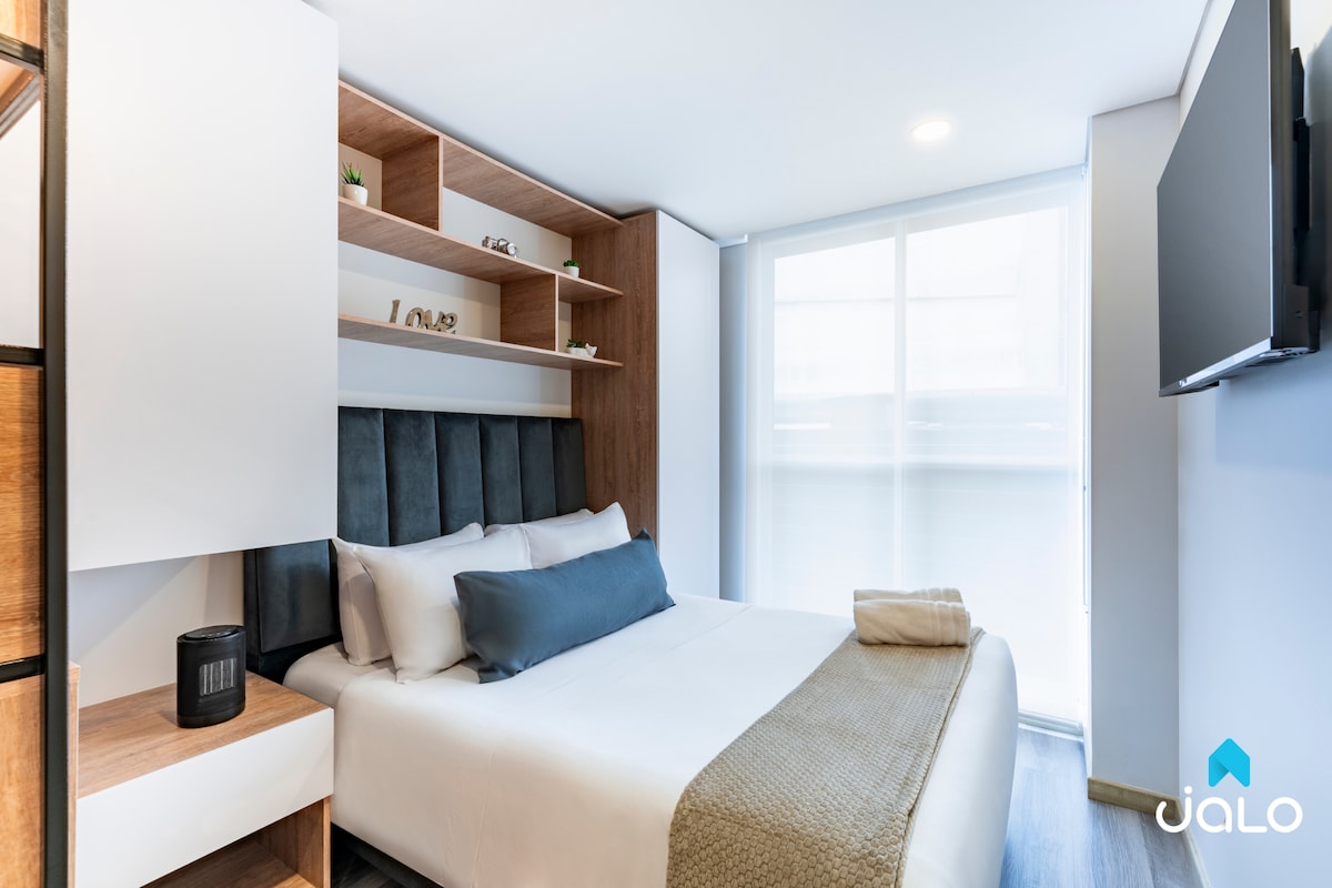 Disfruta de un moderno loft en una de las zonas más exclusivas de Bogotá. Ubicado estratégicamente a pocas cuadras de la Zona T, Zona G, y los principales centros comerciales como Andino, Atlantis y El Retiro, así como de la clínica del Country, este loft te sitúa cerca del centro financiero y de los mejores restaurantes, bares y sitios de entretenimiento de la ciudad. Ideal para estadías largas o viajes de trabajo y turismo. El edificio cuenta con co-working y terraza.