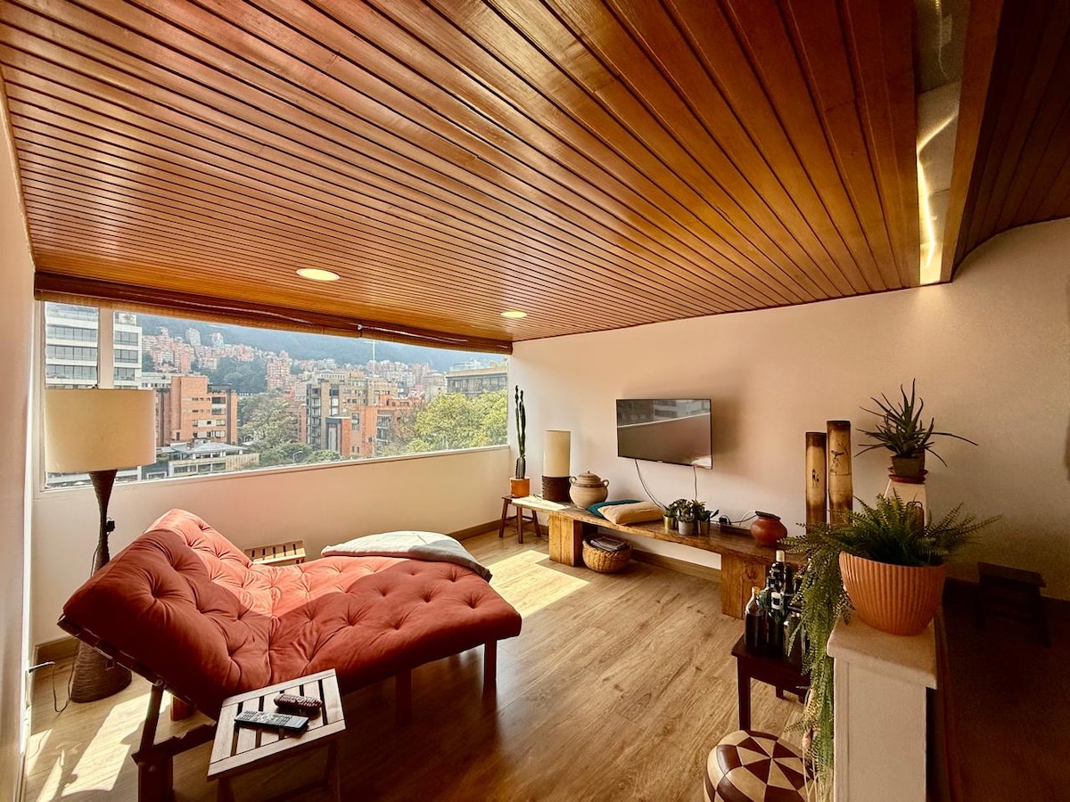 This cozy apartment is located on Cra 7 in a modern building that is only a few years old. Located in Chapinero, it overlooks a breathtaking interior garden and is equipped with anti-noise windows that make it a quiet and relaxed space. It has private parking, excellent security and is only steps away from the financial center of 72nd Street, the gastronomic and design areas of Quinta Camacho and Zona G. With an artistic and modern interior design, it is the perfect place to experience Bogotá.