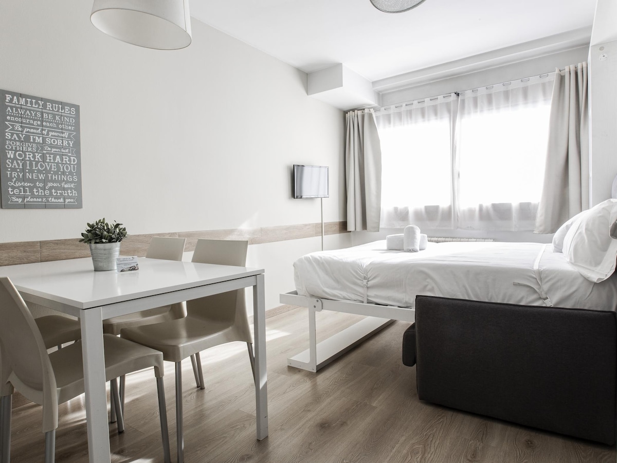 Es un alojamiento soleado y muy bien equipado con acceso al centro de la capital en un par de minutos andando. Tiene una terraza con unas preciosas vistas al centro de la capital y a las montañas. Este alojamiento también tiene un salón espacioso para disfrutar de la tranquilidad del lugar. TAXA TURÍSTICA NO INCLUIDA. Internet Wifi 5G gratuito. Aparcamiento gratuito en el mismo edificio ( 1 plaza de estacionamiento). Disponible una segunda plaza con un precio adicional de 20€ por noche.