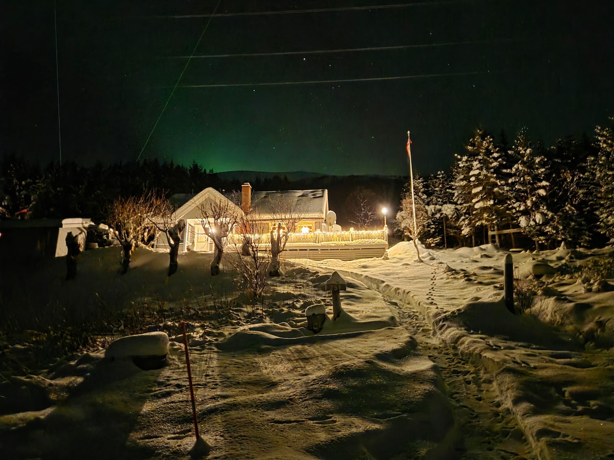 Have a dream of seeing the northern lights, the midnight sun or waking up to a moose in your backyard? This cozy cabin can offer it all. The cabin lays right next to the main road, but in an amazing area of nature. The view can offer both mountains and ocean view, in a beautiful fjord. If you are driving by on your way to Senja, Lofoten or Andøy. This can be an excellent place for a rest. With beautiful views, excellent hiking possibilities and hunting and fishing right outside your front door.