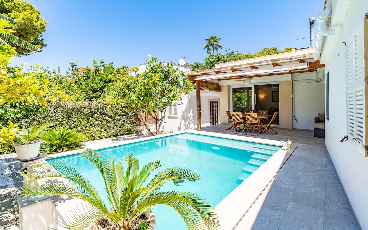 Preciosa casa-apartamento con encanto en bonito pueblo de la Sierra de Tramuntana. Reformada, de 30m2, muy luminosa, dormitorio con cama doble, baño, sala con cocina totalmente equipada y sofá-cama doble, jardín y terraza con piscina compartida. A 30 min en coche de las calas de la Costa Norte. Lugar ideal para practicar senderismo y ciclismo. Situado a tan solo 14km de Palma y a 25 min en coche del aeropuerto. El pueblo cuenta con supermercados, varios restaurantes y polideportivo municipal.