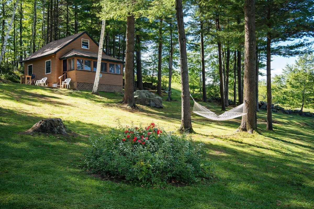 Hear and see the loons from the comfort of this screened in porch. There is a trundle bed that pulls out on the porch for those that would like to lay out there , read , and listen to the birds. The cabin built in 1944 was the second structure built on our property. It is in between our boathouse and the main house. It is unique and rustic. There are two bedrooms and one bath. A small bar. A private dock and a shared beach area. There is taxidermy in the cabin including a half mount Grizzly.