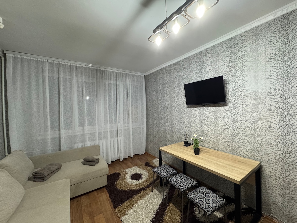 Cozy open-plan apartment in the heart of Rîșcani. Perfect for couples, small families, or guests traveling with children or pets. The apartment features a comfortable bedroom with a large bed, a sofa in the living area, a fully equipped kitchen, fast Wi-Fi, air conditioning, and a TV. Located on the second floor, with easy self check-in for a smooth and flexible arrival. Shops, cafés, and public transport are just steps away.