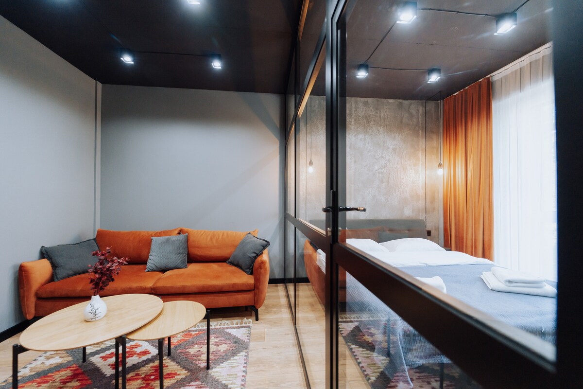 Orange Nest is a modern-designed apartment, created for enjoyable and comfortable stays in Chișinău. ✔ 2 separate bedrooms with large beds and comfortable mattresses ✔ Heated floors in the kitchen, living room, and bathroom ✔ Automatic heating – always the perfect temperature ✔ Air conditioning (2 units) ✔ Private underground parking – safe and secure for your car Arena Chișinău is very close — ideal for guests attending concerts or events.