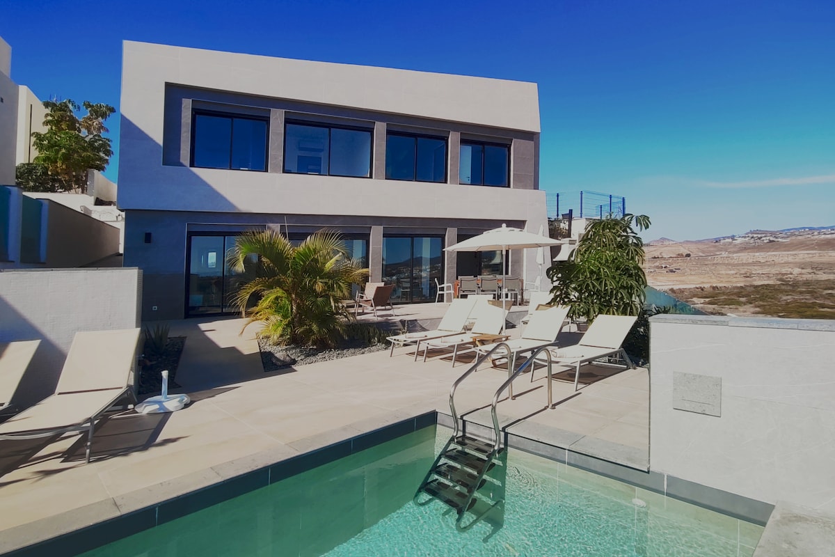LUXURY VILLA COMPLETELY RENOVATED!!! The place to be for a perfect family vacation in Gran Canaria! Contemporary decoration, garden with private heated pool and sun all day. At night you can also enjoy the outdoor space with its BBQ. Located in a very quiet and safe area, but at the same time very close to hiking trails, the famous Anfi Tauro golf course, the best beaches on the island, and shopping and leisure areas such as Puerto Rico, Puerto Mogán, etc