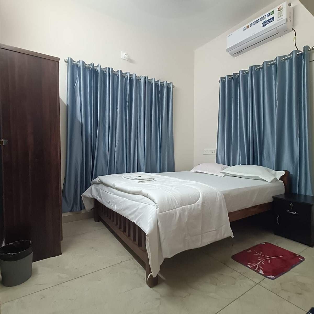 Our 2-bedroom home is the perfect escape for those seeking a peaceful and relaxing stay near Kochi. It features two comfortable bedrooms, minimalistic interiors that ensure a restful night's sleep, rooms filled with natural light—ensuring a bright and airy ambiance. Convenience meets serenity in our home. Situated just 25 minutes from Kochi Airport and an hour from Fort Kochi and Ernakulam city, our home offers a peaceful stay away from the bustle. Delicious home-cooked food is a request away.