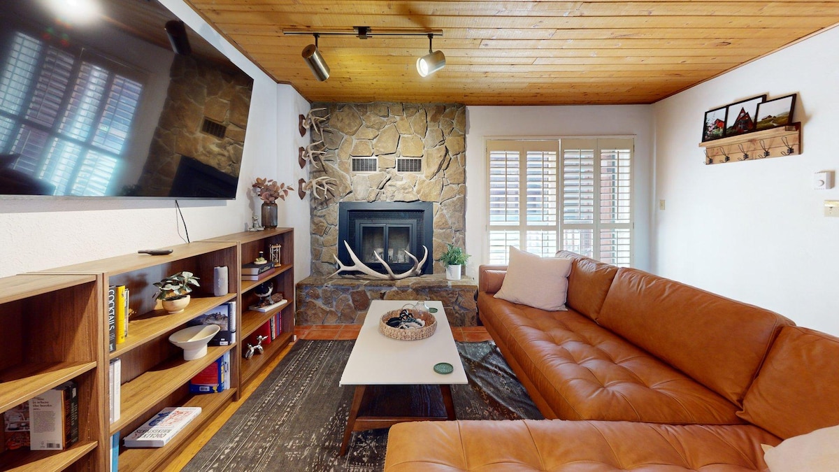 Remodeled just last year! Sure to be the coolest condo in Angel Fire! 😎 This fun rendezvous is nestled in the woods of the Pinetree Commons complex. It's only 2 blocks from the AF Resort. Close to skiing, biking, hiking, golf and more! Grab a drink and enjoy one of the 2 outdoor balconies or cozy up by the fire. The interior is fun and inviting... with eclectic murals and decor offering a different experience than anything in the area! Perfect for families/friend groups! 😊