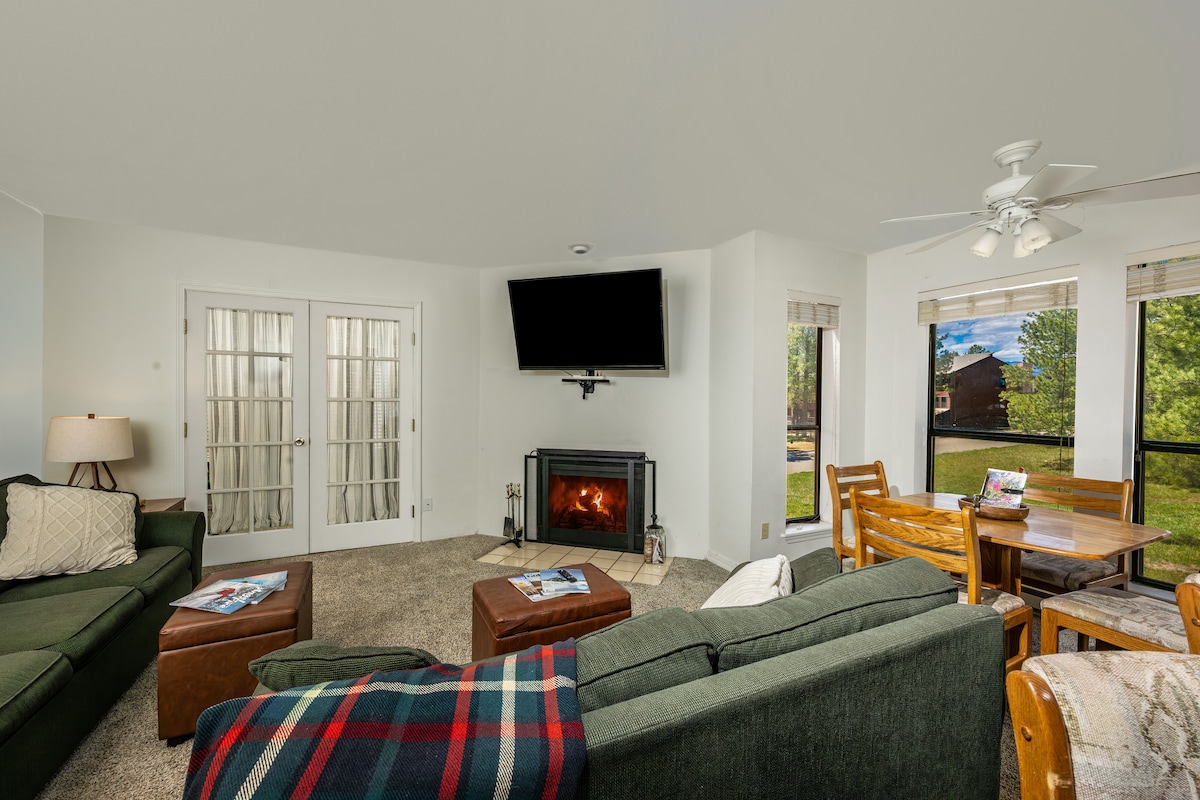 Welcome to the closest to a SKI IN/OUT condo complex in Angel Fire! • Easy access to lifts in summer and winter • Balcony with base area and mountain views • Gas fireplace • Smart TVs in bedrooms. Cable TV in living room • Free WiFi • Washer & dryer in unit available for guests • Free on-site parking • 1.5 miles from the golf course and country club **There may be ski in/out limitations when snow is low. On left side of dreamcatcher run. Contact host with questions**