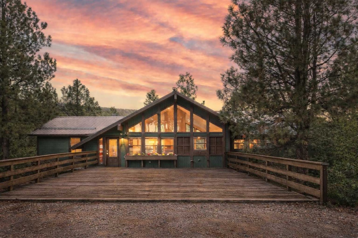 ⛰️🏔 Unmatched view (10,000ASL) ⛰️🏔 Hot Tub ⛰️🏔 8.5 acres to explore, plenty of card/board games for the family 🏔⛰️Fiber internet, TVs in every room ⛰️ Largest mountain bike park in the Rockies ⛰️Minutes to hiking, Golf, fishing, horse back riding 🏔Minutes to ski/snowboard, x-country ski, sledding Our beautiful Santa Fe style home is the prefect place to relax or seek mountain adventures! Book now and experience the magic of Angel Fire from the top of the world!