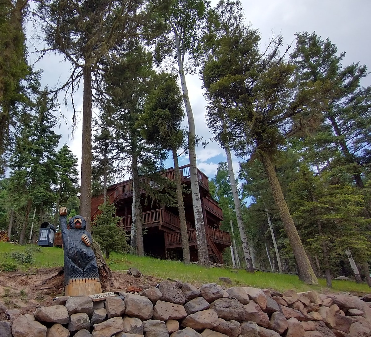 Located in the Angel Fire Resort, Spyglass Cabin is a newly constructed home with all new furnishings that overlooks the beautiful golf course and is only minutes away from the ski lifts. This modern, yet cozy cabin has 3 bedrooms, each with their own smart TVs and 3 full bathrooms and is equipped with high speed internet. In addition to the amazing indoor space step outside and enjoy the large deck that is covered on one side and features a hot tub, gas fire pit, cornhole, and ping pong.