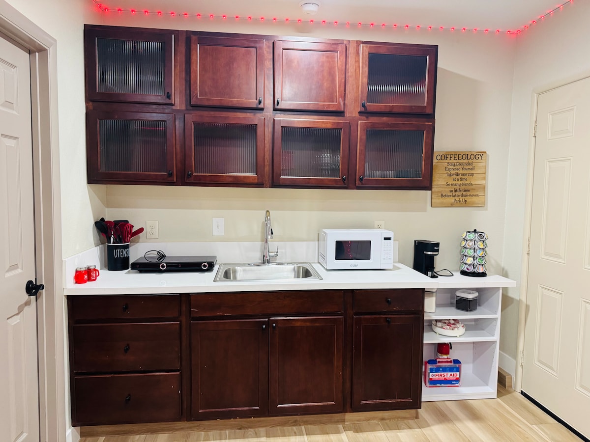 Our beautiful 1-bedroom private suite awaits, featuring a studio kitchen, private full bathroom, board games, dedicated workspace, cozy living room with coffee bar. Relax in your private oasis with a beautiful backyard, big pool (3-10ft deep) and spa. Perfect to unwind after a thrilling day in Vegas. Suitable for a romantic getaway, fun-filled family trip, or solo vacation! Book now and experience your ultimate vacation! Enjoy total privacy with a separate entry and no host interaction.