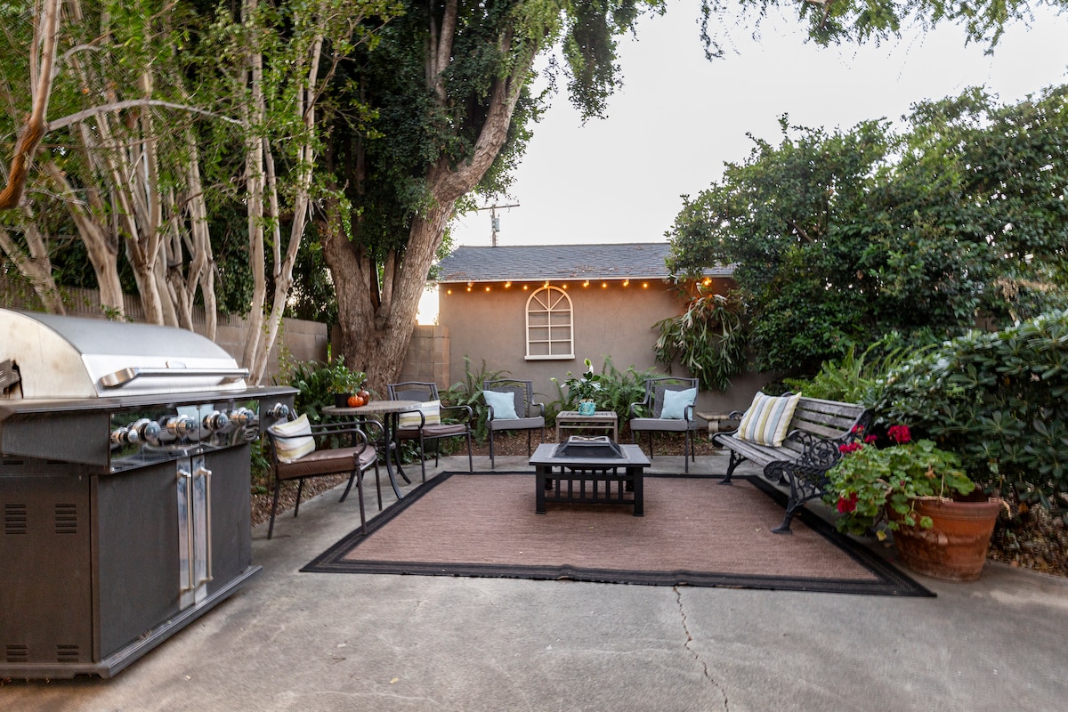 Sunny Days is a beautiful and spacious 600 sq. ft. studio apartment with a private entrance and patio. You'll love the bright and airy space, complete with 10-foot ceilings! In the evenings, relax with a glass of wine in the cozy private patio, grilling dinner on the BBQ, and hanging around the gas fire pit. We are centrally located to Newport Beach, John Wayne Airport, and Disneyland. Only a short walk to TeWinkle Park and the OC Fairgrounds. Easy free street parking in a lovely neighborhood.