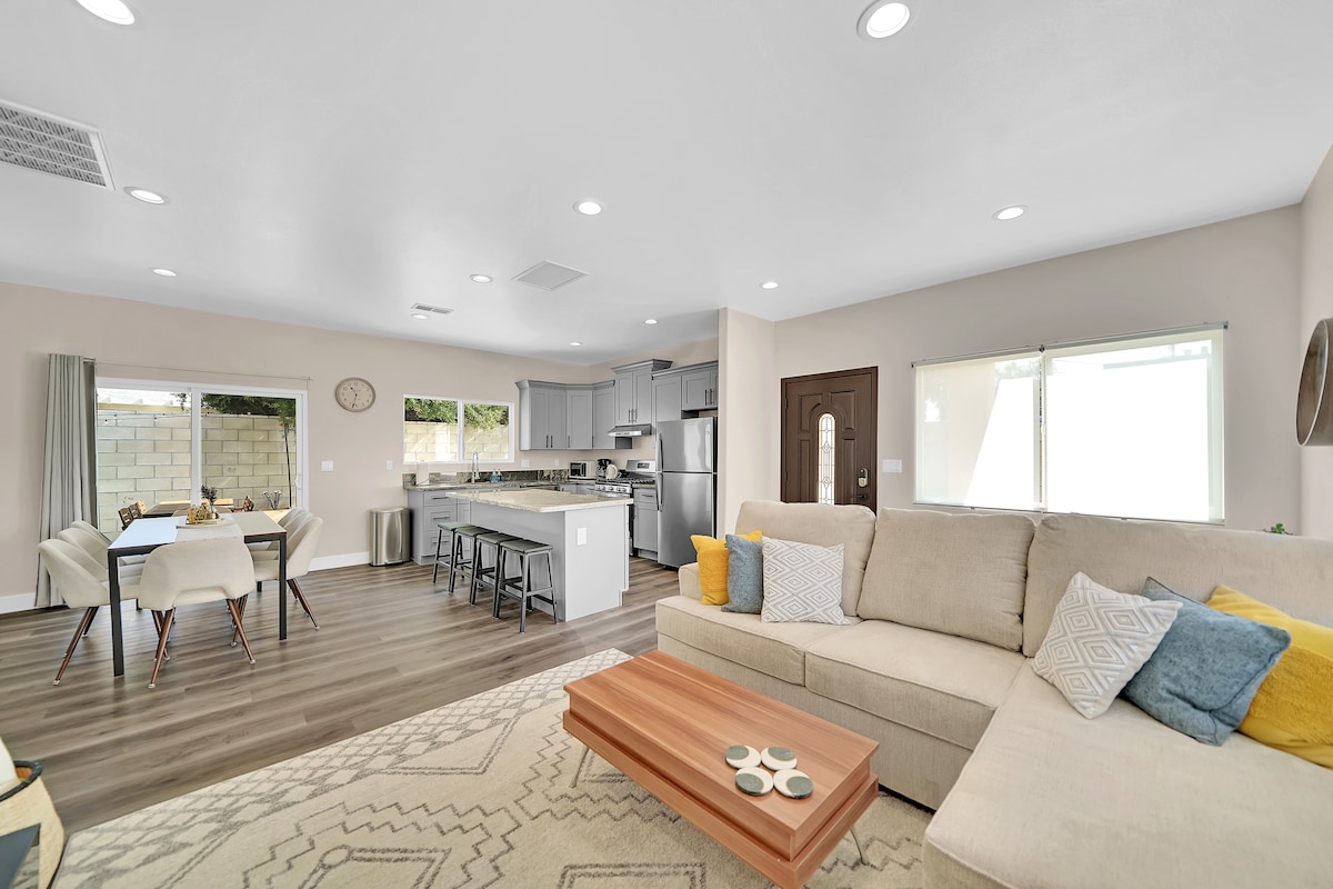 Welcome to our beautiful three-bedroom, three-full-bathroom home! Nestled in the center of Orange County, this stunning home provides an ideal sanctuary for families or friends. Boasting a modern design, this home exudes sophistication, style, and comfort, with all furnishings being brand new as of 2023. The generously-sized windows allow for plenty of natural light to fill the living space, creating a cozy ambiance that seamlessly blends with our well-appointed kitchen and backyard space.