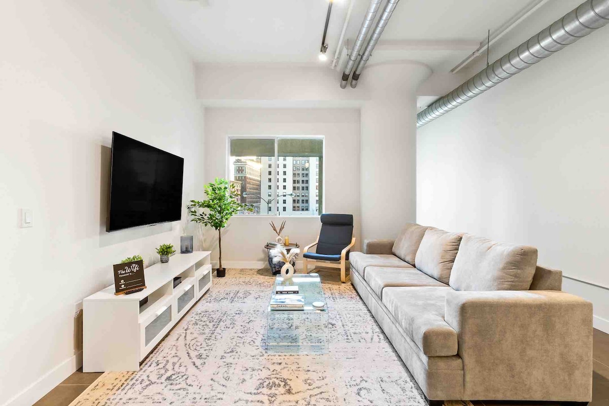 位于洛杉矶市中心的现代宽敞单卧室阁楼-免费停车