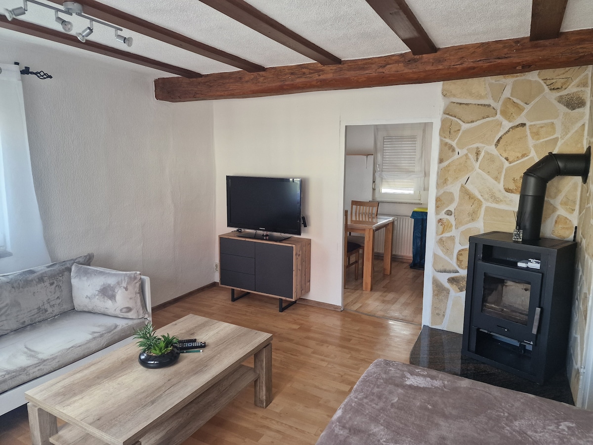 Ausstattung • 65 qm für 2 Personen • offene Küche • Wohnzimmer mit TV und Schlafcouch • Schlafzimmer mit TV • Bad mit Dusche, Badewanne und WC • eigener Eingang • Nichtraucher • Haustier erlaubt Wer Ruhe und Entspannung vom stressigen Alltag sucht ist hier genau richtig. Im kleinen Dörfchen Weifenbach, am Fuße der Sackpfeife, bieten wir Ihnen eine mit viel Liebe zum Detail eingerichtete Ferienwohnung im modernen Landhausstil. Idealer Ausgangspunkt für Wander-, Fahrrad- und Städtetouren.