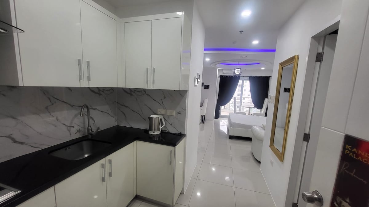 Angelic Premier Residences is close enough to SM, Korea town, restaurants & bars, but far enough that it's not too noisy. The building has gym, 24-hour rooftop pool, and a sports bar with a billiards table. There is common parking in front of the condo on a 1st come 1st serve basis + additional parking lot across the street. This is a fully-fitted 1-bedroom apartment with easy check-in, 2 x Netflix TVs, 200Mbps Fibre Optic Internet, 1 x King-size bed, one fold-up single bed and a comfy couch!
