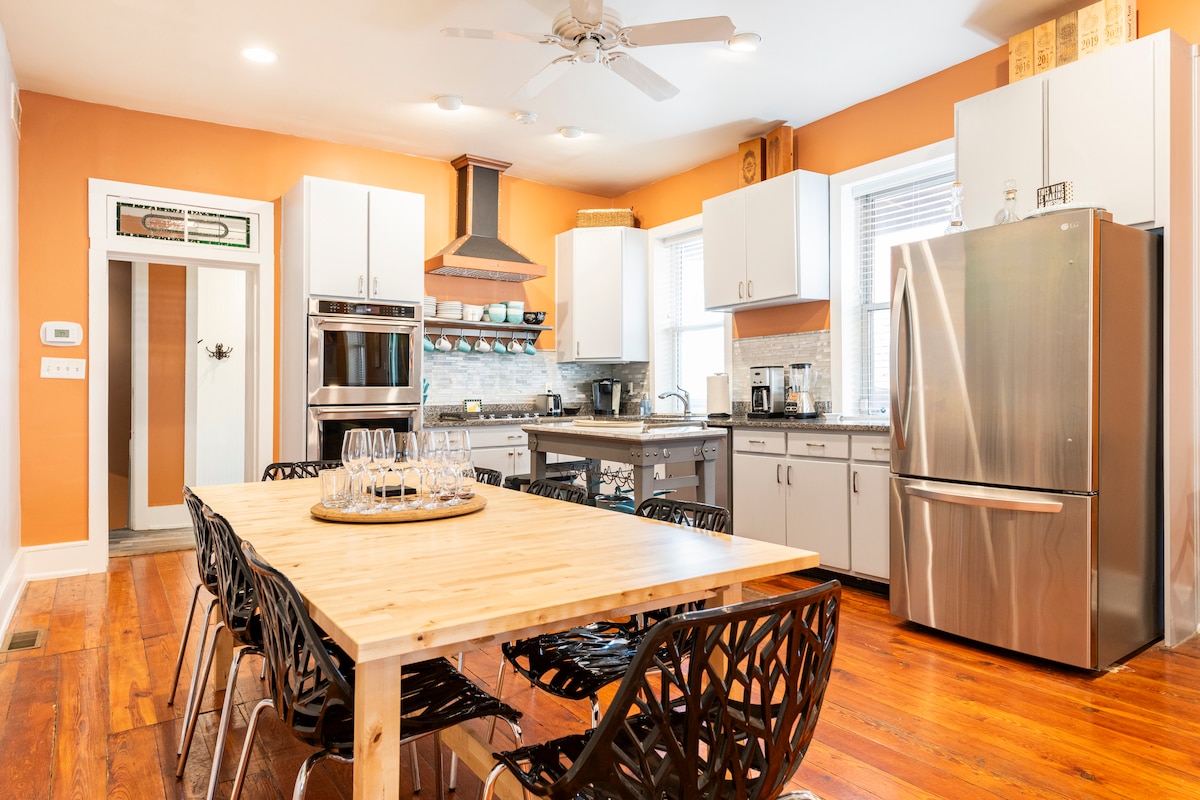 This spacious, personality-filled home in the heart of downtown is the perfect base for bourbon trail weekends, weekday corporate stays,or family get-togethers. You can walk everywhere! With 3,000 sq ft of flexible space it's great for group connection; there's a private patio, plenty of gathering zones, comfy beds, a chef’s kitchen, and thoughtful touches that make your stay feel special. The home is soulful and full of character—ideal for groups who value comfort, style, and a great location.