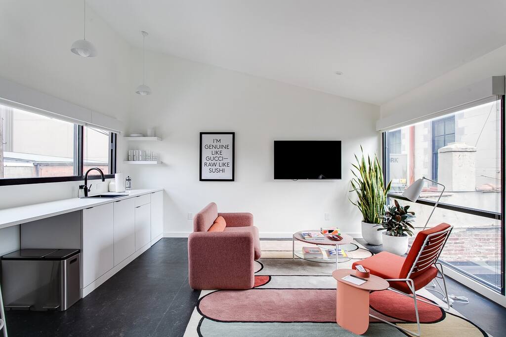 Steps from the city’s favorite restaurants, distilleries, breweries, coffee, shopping, wine bars, and galleries, you can fall out of bed and into your choice of any number of NuLu experiences. Easy access to bike and scooter rentals. - In the heart of NuLu, next door to NuLu Marketplace - Within a block of restaurants, breweries, distilleries, wine bars, coffee shops, & retail - Contemporary architecture, furnishings, and art - Professionally managed - Kitchenette includes a refrigerator, sink