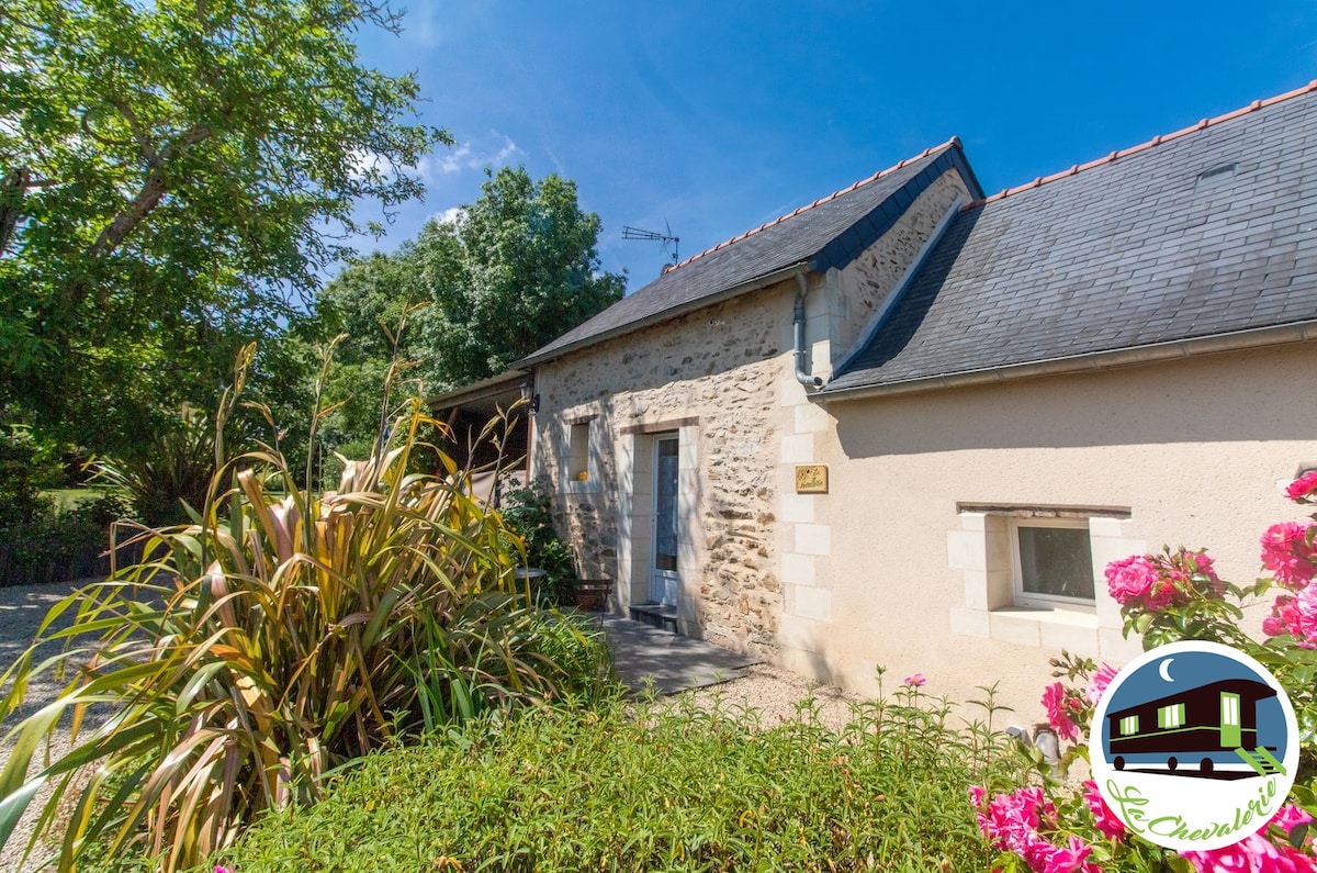 Gîte de charme avec cheminée classé 3 étoiles avec un grand jardin fleuri et boisé de 1200 m2. Sentiers GR devant la maison, le gîte est idéalement situé entre ANGERS et SAUMUR. Venez faire une halte bucolique dans notre jolie gîte du 16eme siècle, entièrement restauré avec ses pierres apparentes. Il est situé dans un village des bords de Loire classé « village de caractère ». De la maison, à pieds ou à vélo, découvrez les bords de Loire, le vignoble, les forêts de chênes et châtaigniers.