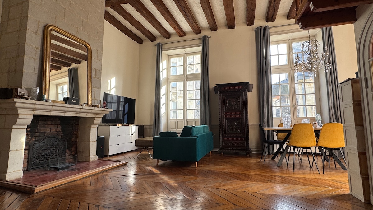 Located in the heart of the city, at the foot of the Angers Castle. - This listed apartment combines exceptional location, peace, and modern comfort. - Just steps from the train station with view of the Castle and near of the Port. - Ideal for couples (romantic setting), families, or remote work. - Quiet bedroom with quality bedding, equipped kitchen, smart TV, fast Wi-Fi, linens, washing machine, free parking. Stay in this beautiful, renovated flat ideally located in the heart of Angers.