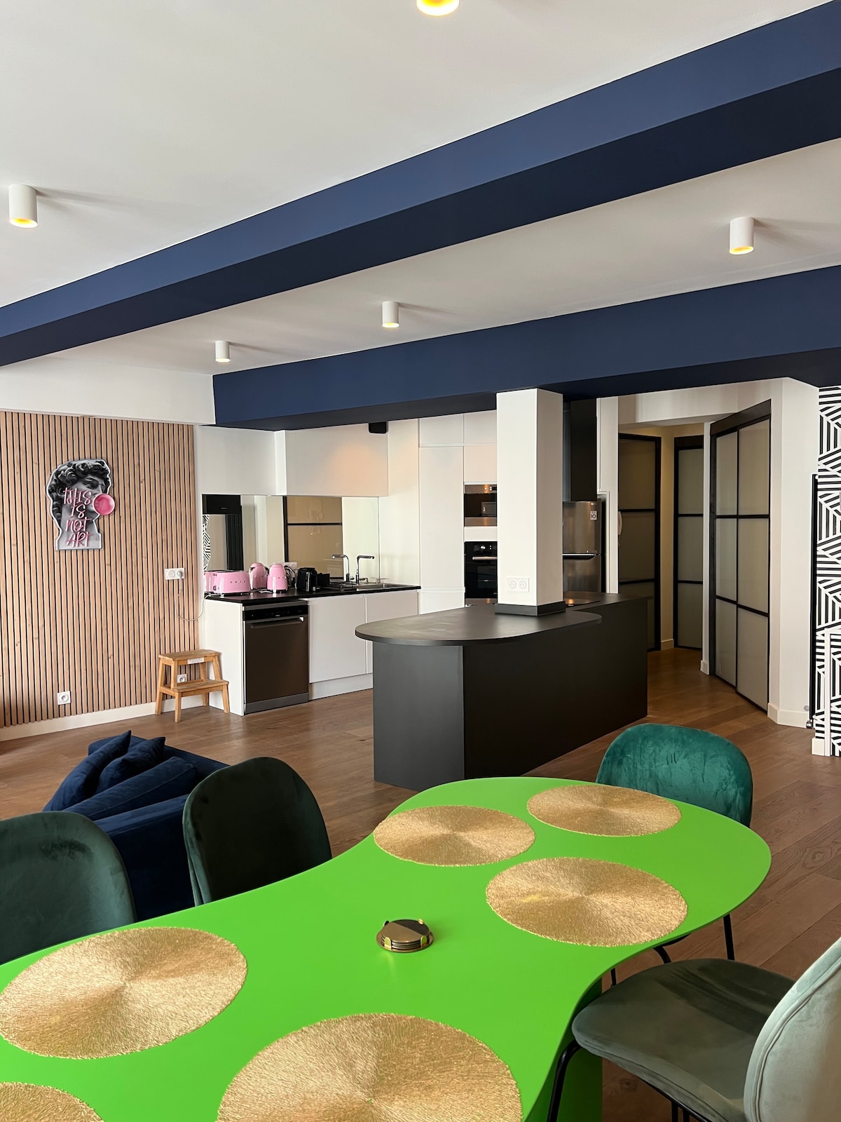 Rénovation complète haut de gamme de notre ancien atelier d’entreprise familiale. Posez vos valises au cœur d’Angers pour se balader ensuite à pied et vous reposer dans votre chambre tout confort comme l’hôtel ! Les matériaux choisis avec précision et goût pour rendre votre logement paisible. Pas de jaloux ! Chaque chambre possède sa propre salle de bain, toilettes dressing, bureau et sa télévision. 100m2 rien que pour vous Serviettes de bain fournies Insta & face : M_apartment_angers