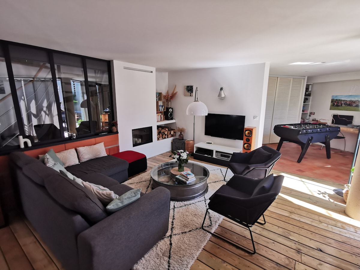 Véritable cocon de 60 m² classé 4 étoiles meublé de tourisme pour accueillir jusqu’à 4 personnes avec grand spa et sauna privatif en intérieur. Central, 7 min de la gare/10 min du centre à pied, places gratuites à 50m et tram à 200 mètres. Maison parfaitement décorée et équipée tout confort avec Netflix, au calme, avec patio privatif sans vis à vis. Elle est doté d'un grand salon/salle à manger, d'une cuisine équipée, d'une chambre , d’un coin nuit avec lits superposés et d’un espace détente