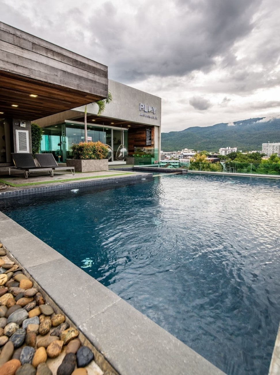 在尼曼街(Nimman St.)的全新时尚客房,您可以一览山景