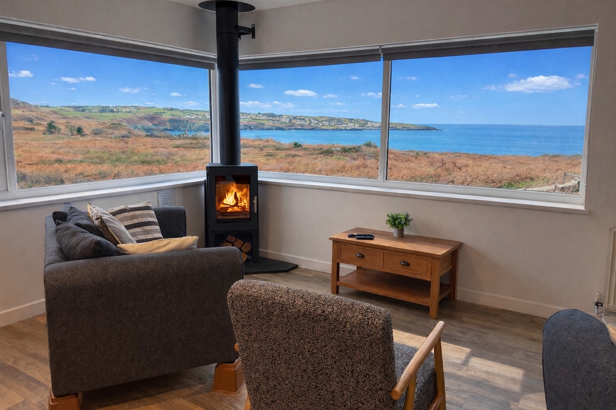Beachfront home with uninterrupted spectacular views out to the Irish Sea. With private stepped access to the beach, our home comfortably sleeps 4 across 2 bedrooms & 2 bathrooms, but can sleep up to 6 using the sofa bed in the second lounge. Enjoy sunsets from the decking relaxing on our sun loungers or find secluded spots on the cliff tops for even more privacy. The Annexe adjoins Ty Deryn Y Mor (also a holiday let), each has their own private garden, decking and path to the beach.