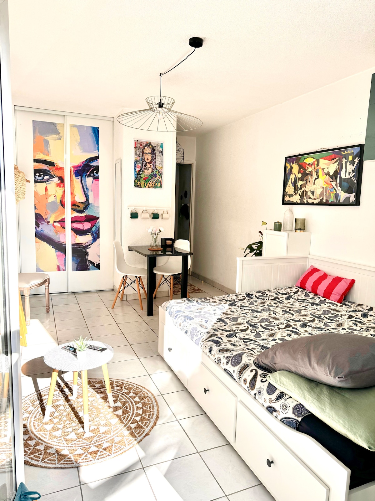 Appartement 32m²face à l'océan, au rez de chaussée d’une résidence sécurisée avec concierge 1 Place de parking numérotée, fermée par portail automatique Il comprend: Séjour avec coin cuisine/repas, salon avec banquette fixe, Chambre (1 lit en 140 et une penderie) Salle de bain (douche, lavabo, wc) Appartement non-fumeur FÊTES ET SOIRÉES INTERDITES Animaux non acceptés Idéalement situé, à 2 minutes des plages et de toutes les commodités