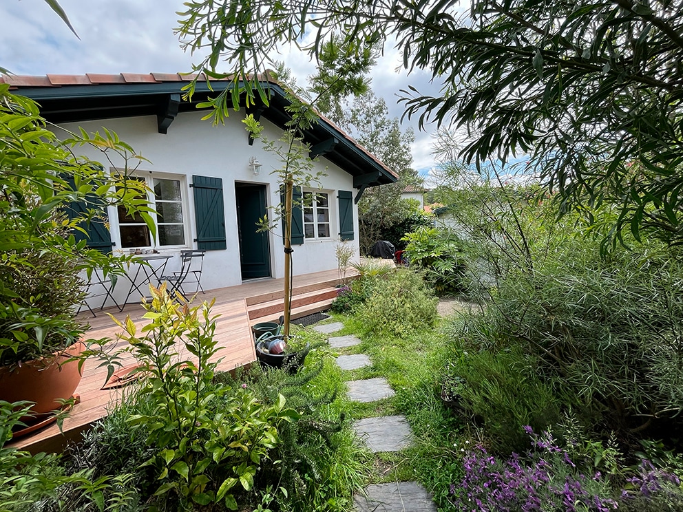 🏡Maisonnette au calme pour amoureux de la nature, entrée indépendante, jardin partagé. Idéal pour se détendre à deux pas (1km) des plages d'Anglet⛱️🏄♀️port de plaisance🛥️, forêt de Chiberta🌳et patinoire ⛸️ Voies cyclables 🚲et bus 🚌 (réseau txik-txak) pour vous déplacer jusqu'à tard la nuit ( horaires d'été ). Micro-onde, frigo,bouilloire, cafetière grille pain, sèche cheveux. ⚠️Pas de plaque chauffante. 🛒Halles de Blancpignon à 1km : primeur, épicerie,brasseur, resto)+carrefour contact