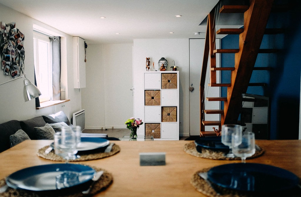 Loft style house in nice & quiet neighborhood with patio under the pines. Ideally located b/w the port and Capbreton's beach, close to grocery store, bakery and beach bus. Big living room with american kitchen. 2 bedrooms and bathroom upstairs. Private terrace with dining table and BBQ IMPORTANT: Arrivals and departures will be autonomous with secured key box.