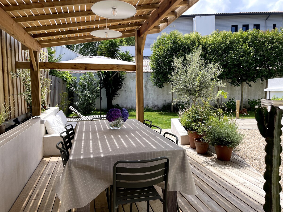 In the heart of the city, close to the beaches and shops but quiet, you will immediately feel on vacation in this charming house decorated with taste. Its private garden with deck chairs and garden furniture will be ideal for your rest and your various meals. It has on the 1st floor 2 bedrooms and a bathroom. To work you have a very fast connection. This house is perfect for spending a pleasant holiday with family or friends...