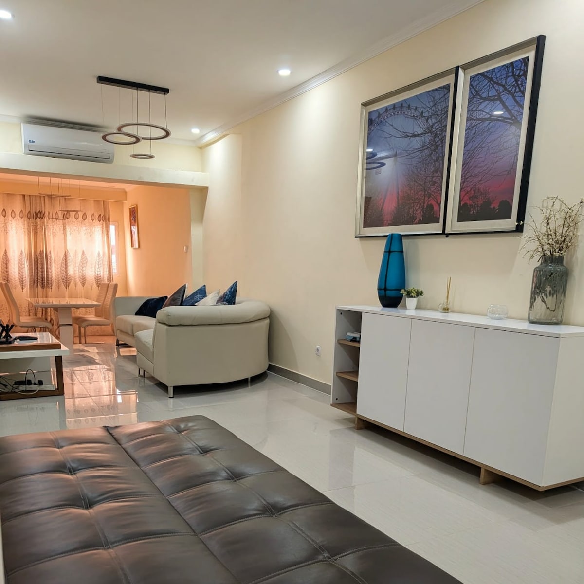 This eclectic and cosy 2 bedroom flat is perfect for solo travellers, couples and also trios who want comfort and cultural immersion in the centre of Luanda. It is fully equipped with essential amenities for your comfort, such as AC's in all rooms and mosquito nets in most windows. WE OFFER WELCOME GIFTS. Located only 8min from the international airport and 6min from Luanda Bay, this property is surrounded by restaurants, cafes and basic services within walking distance.