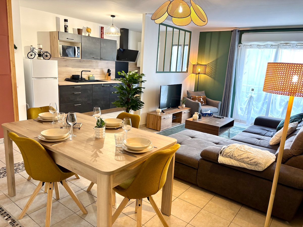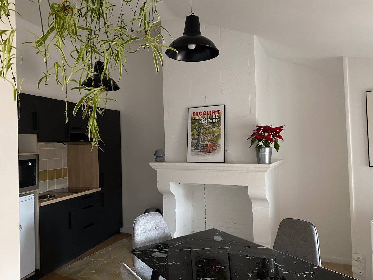 Notre appartement situé en plein centre ville d’Angoulême (500 m gare), a été rénové entièrement à neuf au printemps 2018. Il dispose de nombreux atouts pour vous apporter toute l’aise dont vous auriez besoin pour vos voyages d’affaires, séjours en famille ou visites furtives de la capitale de la BD entre amis ! Parfaitement équipé, il est composé d'une cuisine, d'un salon, de 2 chambres spacieuses, d'une sdb, d'un wc séparé, d'un bureau et d'une cour commune, le tout dans un endroit calme.
