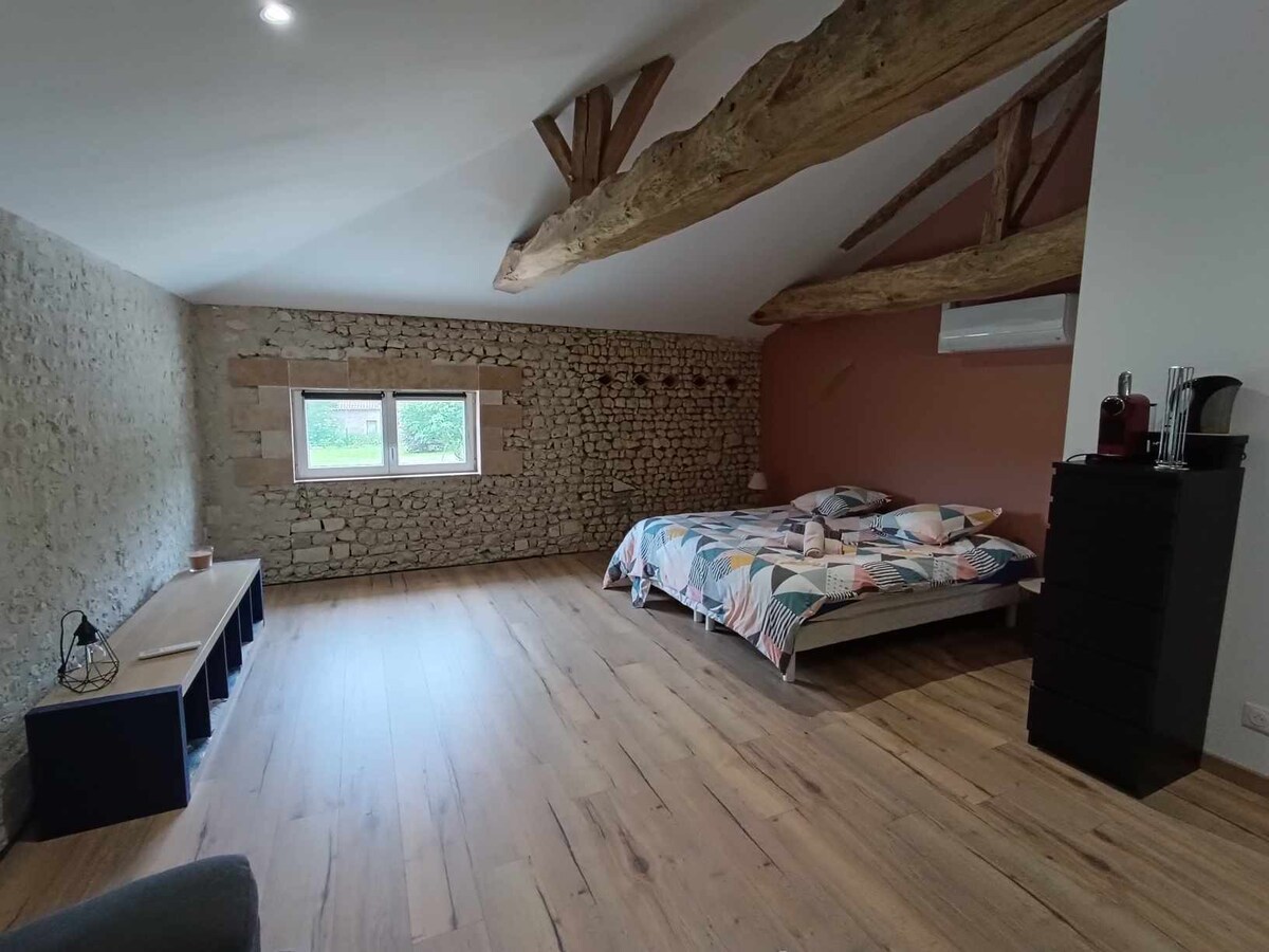 Grange rénovée,piscine intérieure,sauna,12pers