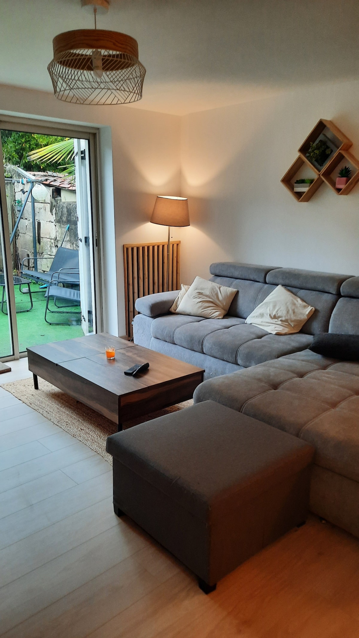 Maison lumineuse et indépendante à 5 min en voiture de toutes commodités avec jaccuzi : bain nordique Pour résumé, la maison a Une grande pièce de vie ,cuisine toute équipée Une chambre toute aussi grande avec son coin bureau pour un espace (wifi) Une Salle d’eau lumineuse et fonctionnelle (receveur de douche extra plat, WC suspendu, meuble vasque intégrant un lave-linge) Terrasse Jardin privatif stationnement privé, barbecue Equipement bébés sur demande (lit parapluie, chaise haute)
