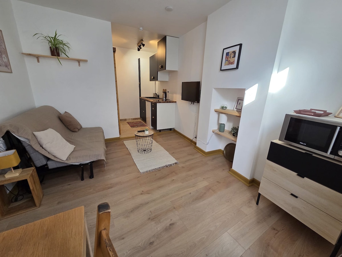 À deux pas de l’Hotel de ville, dans une impasse de la rue piétonne, cet appartement tout juste rénové vous propose un accueil chaleureux et de qualité. Situé dans une résidence sécurisée et équipée d’un ascenseur, il possède une cuisine toute équipée, une chambre pouvant accueillir deux personnes et un salon spacieux comportant un canapé convertible très confortable pour deux personnes supplémentaires. Le linge de lit, de salle de bain, les produits ménager et d’hygiène sont fournis.